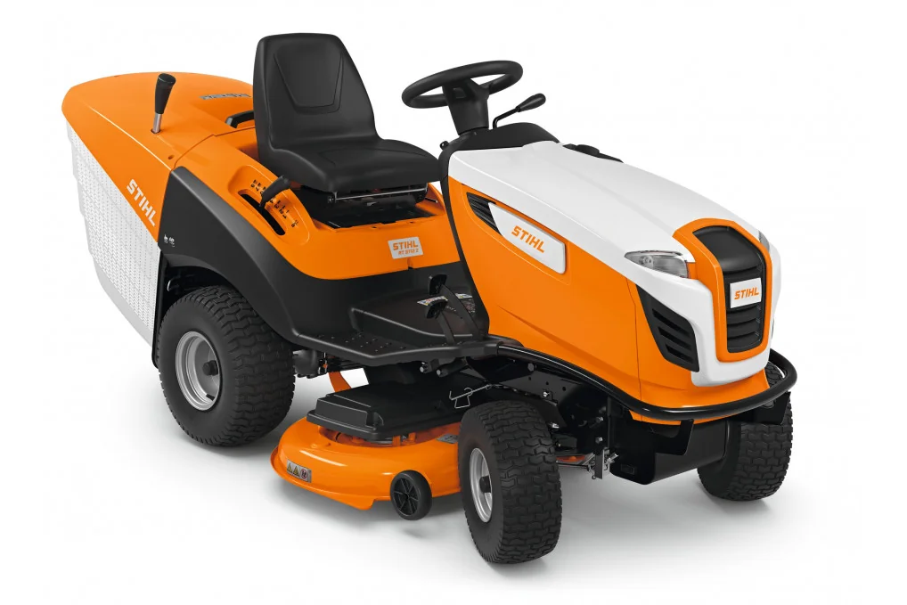Unser STIHL Aufsitzmäher RT 5112 Z vereint Effizienz mit hohem Fahrkomfort und leistet Landschaftsgärtnern und privaten Gartenbesitzern wertvolle Unterstützung. Die Schnittbreite von 110 cm macht es möglich, auch weitläufige Rasenflächen von bis zu 8.000 m2 schneller zu bearbeiten. Durch das Fangleitsystem wird das Gras gezielt dem Synchronmähwerk zugeführt. Dieses ermöglicht eine konstante Schnittqualität sowie den optimalen Grastransport zum Auswurfschacht. Durch die elektromagnetische Messerkupplung (EBC) des Sitzrasenmähers STIHL RT 5112 Z können Sie das Mähdeck bequem mittels Wahlschalter an der Lenksäule ein- oder ausschalten. Der Rasentraktor RT 5112 Z von STIHL wird von einem leistungsstarken 2-Zylinder-Motor angetrieben. Die Fahrtrichtung (vorwärts bzw. rückwärts) kann mit dem Wahlschalter an der Lenksäule gewählt und die Geschwindigkeit mittels Gaspedals stufenlos eingestellt werden. Mit Hilfe der zentralen Schnitthöhenverstellung können Sie die Höhe Ihres Rasens in mehreren Stufen zwischen 30 mm und 100 mm einstellen. Das Gras wird während des Rasenmähens im 350-l-Grasfangkorb gesammelt und lässt sich mit dem Säbelgriff bequem vom Fahrersitz des Rasentraktors STIHL RT 5112 Z aus entleeren.