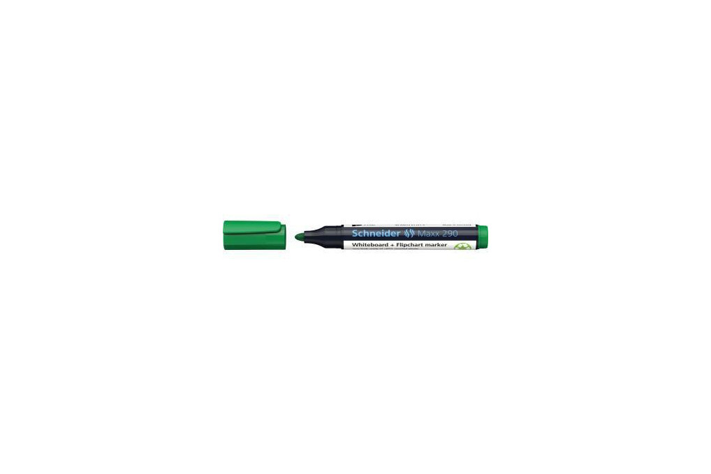 Schneider Boardmarker Maxx 290 129004 1-3mm Rundspitze grünSchlägt bei Verwendung an Flipcharts auf Papier nicht auf nachfolgende Seiten durch. Die speziell entwickelte Kopfspitze steht auf dem Schaftrand auf und kann auch bei starkem Druck nicht in den Marker eingedrückt werden.