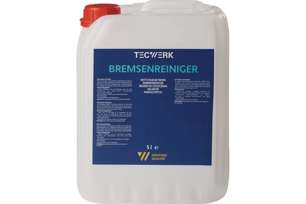 Bremsenreiniger acetonfrei 5l Kanister TECWERKzur Reinigung von Bremssystemen, Kupplungsteilen usw. · entfernt rückstandsfrei Öl, Fett, Wachs und andere Ablagerungen · kurze Einwirkzeit · ideal einsetzbar für die Montage und zur Endbehandlung von Werkstücken, insbesondere auch vor der Lackierung · anwendbar im KFZ-Gewerbe, zur Entfernung von Bremsstaub oder Bremsflüssigkeit · auch geeignet für Glas oder Keramik · frei von chlorierten Lösemitteln und Silikon