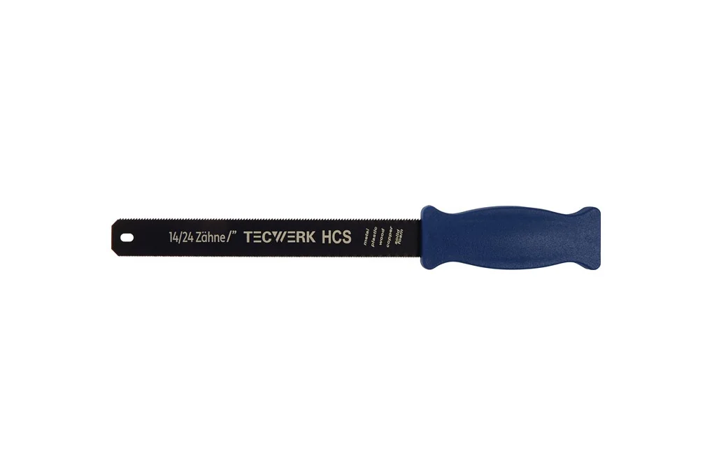Hand-Bügelsäge Blattlänge300mm TECWERKhandliche Bügelsäge für einhändige Bedienung – ideal zum Schneiden verschiedenster Materialien wie Holz, Kunststoff und Stahl bis Ø 120 mm · Ersatzblätter 300 x 25 x 0,75 mm, Kombi 24/14 TPI erhältlich · praktisch für präzise Arbeiten an schwer zugänglichen Stellen dank kompakter Bauweise