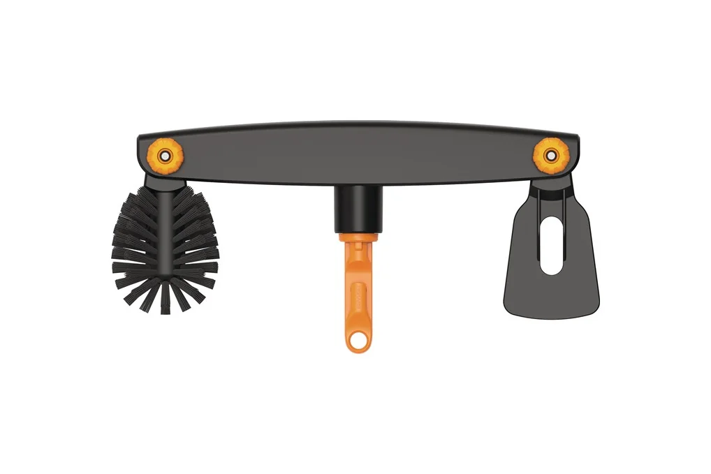 Dachrinnenreiniger OneClick L.342mm G.320g FISKARSgeeignet zum Reinigen von Dachrinnen ohne Leiter · Schaber zum Entfernen von grobem Schmutz und Blättern · individuell einstellbarer Winkel von Bürste und Schaber · verwenbar mit OneClick-Stiel, OneClick-Griff und OneClick-Teleskopstiele Weitere technische Eigenschaften: · Gewicht: 320g