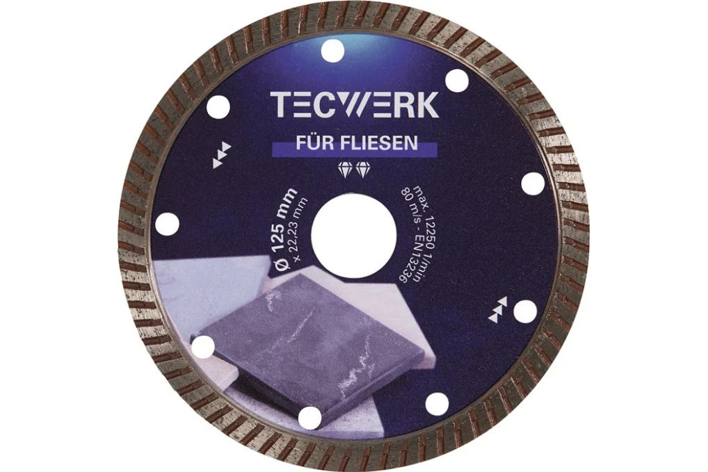 Diamanttrennscheibe FLIESEN PRO T D.115mm Bohr.22,23mm Seg.H.7mm Seg.S.1,6mm TWUniversal-Diamanttrennscheibe mit 7 mm Präzisions Diamant-Segment zum Einsatz auf: Feinsteinzeug, Fliesen, Granit, Marmor, Mosaik, Naturstein, Porzellan, Schiefer · präzise und dünn · selbstschärfend · schnell · langlebig · trocken und nass einsetzbar