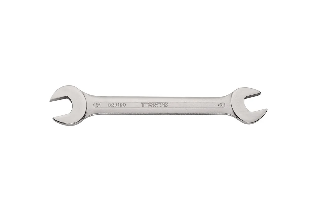Doppelmaulschlüssel 27x32mm L.299mm verchr.TECWERKCV-Stahl · matt verchromt · Maulstellung 15 ° · mit flachen Köpfen DIN 3110 / ISO 3318 / ISO 1085 / ISO 10102 Weitere technische Eigenschaften: · Material: CV-Stahl · Maulstellung: 15° · Oberfläche: verchromt