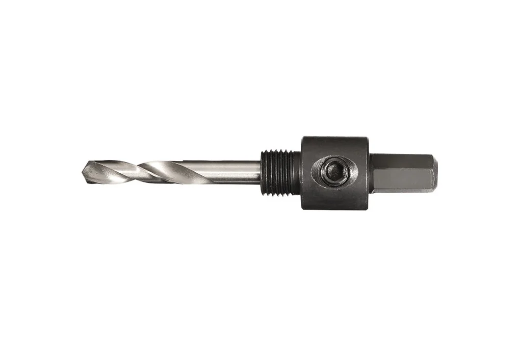Aufnahmeschaft 6-KT 9,5mm m.Zentrierbohrer Lochsägen 14-30mm TECWERKdie Aufnahmen für die Lochsägen werden jeweils mit einem 6,35 mm (1/4")-Führungsbohrer geliefert · eine Feststellschraube ermöglicht die Veränderung der Position des Führungsbohrers