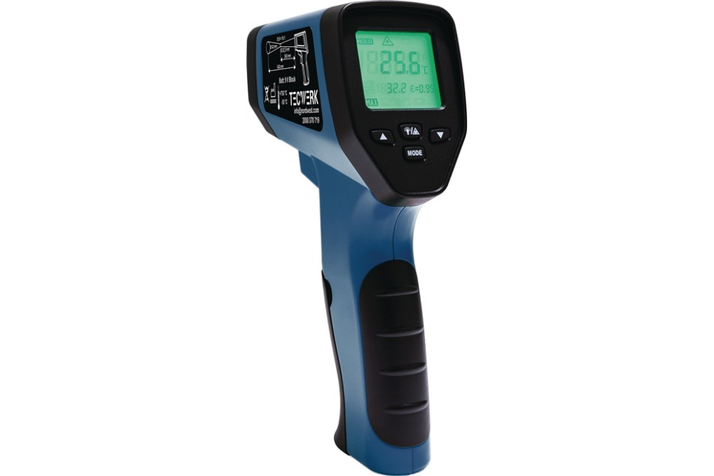 Infrarotthermometer -50 b.ca.750GradC ±2GradC TECWERKduale Laserzielanzeige-Auswahlfunktion · Hoch-Niedrig-Temperatur-Alarmeinstellung · Fahrenheit/Celsius-Umrechnung · Messdaten-Speicherfunktion · Laser-Schwarzlichtanzeige-Auswahlfunktion · Automatische Abschaltfunktion · Anzeigefunktion für schwache Batterie · mit Laserklassenzertifikat Weitere technische Eigenschaften: · Messverhältnis: 16:1 · Arbeitstemperatur: 0 bis 50°C · Genauigkeit: ±2 °C