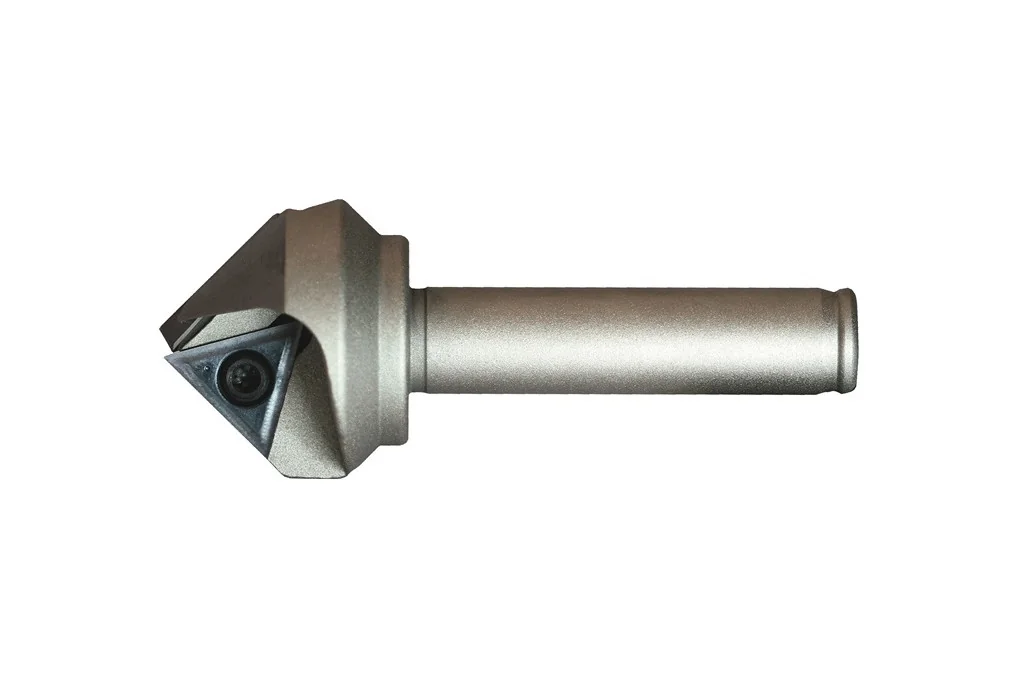 Fasenfräser TCGX D.25mm Schaft-D.12mm vern.TECWERK45° · vernickelte Ausführung · für Wendeschneidplatte TCGX 1635 · 1. Wahl für die Bearbeitung mit Handbohrmaschinen · gute Führung durch gegenüberliegende präzisionsgeschliffene Gleitplatte Weitere technische Eigenschaften: · Schneidenanzahl: 1 · Oberfläche: vernickelt · Wendeplatte: TCGX 1635