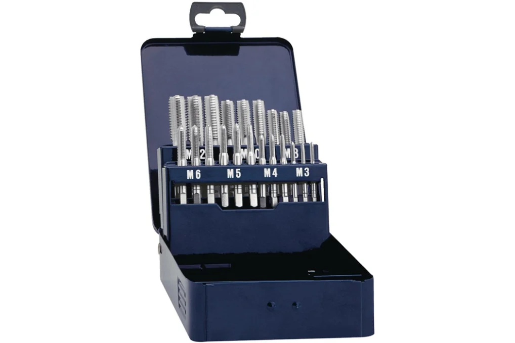 Gewindebohrersatz DIN 352 M3-M12 21tlg.HSS TECWERKHSS · DIN 352 · metrisches ISO-Gewinde · bestehend aus: je 1 Satz Handgewindebohrer DIN 352 M3, M4, M5, M6, M8, M10 und M12 Weitere technische Eigenschaften: · Schneidstoff: HSS · Inhalt: 21 teilig