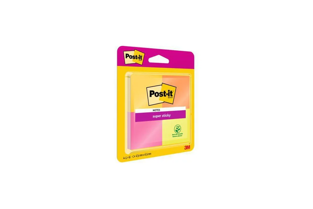 Post-it Haftnotiz Super Sticky 6910YPOG 48x48mm sort. 4StPost-it® Haftnotiz Super Sticky Notes 47,6 x 47,6 mm (B x H) ultragelb · vitalorange · powerpink · neongrün 45 Bl./Block 4 Block/Pack.