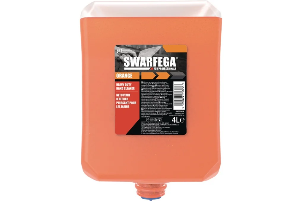 Handreinigungspaste Swarfega® ORANGE 4l Paste SWARFEGAstarker, feuchtigkeitsspendender Handreiniger mit Orangenduft · mit nicht scheuernde Reibemittel aus Maismehl · geeignet für den regelmäßigen, täglichen Gebrauch · silikonfrei · Anwendung: für eine effiziente Tiefenreinigung, um Öl, Fett und allgemeinen Schmutz zu entfernen Weitere technische Eigenschaften: · Reinigungsbereich: mittelstarke Verschmutzungen bei Ölen, Fetten, Ruß, Schmierstoffen · Eigenschaft: mit nicht scheuerndem Reibemittel · Breite: 135mm · Höhe: 243mm · Nettogewicht: 3,72mm · Tiefe: 160mm