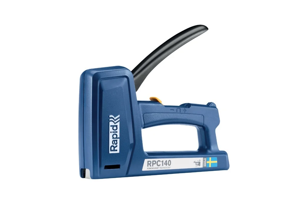 Handtacker RPC140 schlagfester ABS-Ku.RAPIDschlagfester ABS-Kunststoff und Verschleißteile aus hochwertigem Stahl · patentierte Powercurve® Technologie reduziert die zum Tackern erforderliche Kraft um bis zu 50 % · 2-stufige Schlagkraftregulierung für optimierte Leistung · Für Flachdrahtklammern Typ 140, 6-16 mm Schlagfester ABS-Kunststoff und Verschleißteile aus hochwertigem Stahl Weitere technische Eigenschaften: · Klammerlänge/Typ bis: G/6-16 mm Typ 11