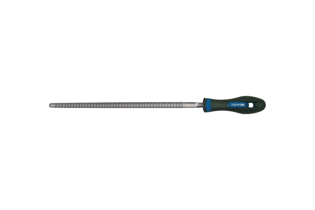 Holzraspel DIN 7263 E L.200mm Q.8mm Hieb 2 rd.2K-Ergo TECWERKrund · mit 2K-Kunststoffheft · Form E · runde, spitz zulaufende Feile mit umlaufendem Raspelhieb · für universelle Raspelarbeiten wie z.B. zum Schruppen und Schlichten Weitere technische Eigenschaften: · Heft: 2K-Ergo