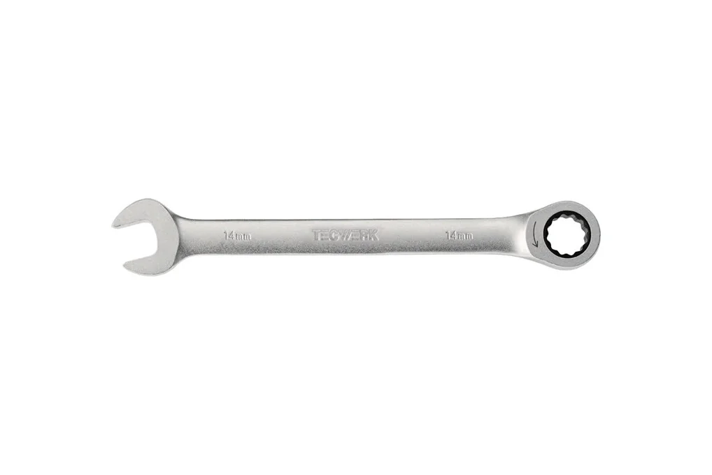 Maulringratschenschlüssel SW 11mm L.168mm ger.TECWERKgerade Form · CV-Stahl · verchromt · Maul 15° abgewinkelt · 72 Zähne Weitere technische Eigenschaften: · Material: Chrom-Vanadium-Stahl