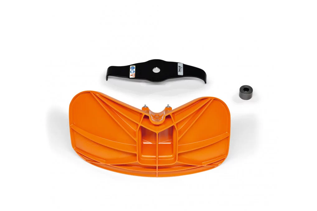 Mit diesem STIHL Häcksel-Startpaket können Profis Häckselarbeiten mit ihrer STIHL Motorsense besser geschützt vor herumfliegenden Häckselgut ausführen. Der Häcksel-Anbausatz enthält alles, was Sie für die Montage brauchen: ein Häckselmesser, einen Häckselschutz und die benötigten Befestigungsteile. Sie können die Einzelteile direkt an Ihre STIHL Motorsense oder Ihrem STIHL Freischneider montieren. Anschließend können Sie effizient und sicher Unkraut beseitigen oder damit im Gestrüpp und bei dicht wachsendem Schnittgut auf großen Flächen arbeiten. Je nach Vegetation werden beim Häckseln neben dem Schnittgut auch Schmutz und kleine Steinchen aufgewirbelt. Der Häckselschutz bietet Ihnen Schutz vor den aufgewirbelten Partikeln. Dennoch sollten Sie bei der Arbeit mit einer passenden STIHL Schutzausrüstung ausgestattet sein.