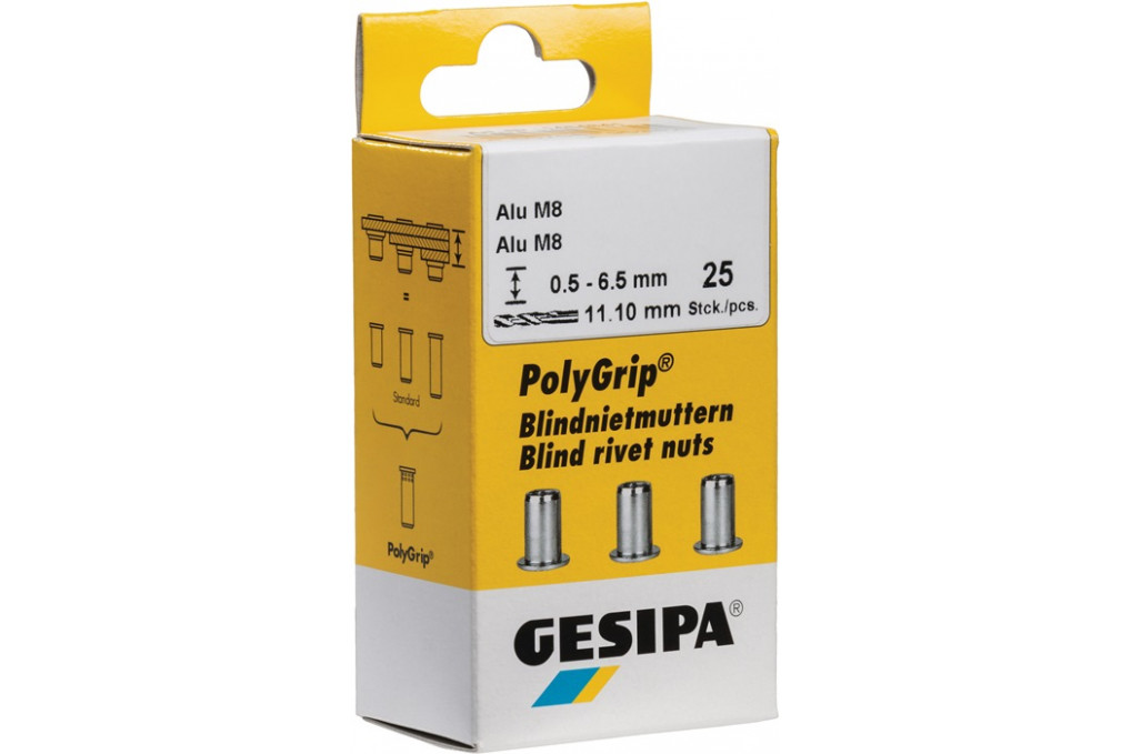 Blindnietmutter PolyGrip® Nietschaft dxl 7x13,5mm M5 VA A2 50 St.GESIPAStandard (Flachrundkopf) Weitere technische Eigenschaften: · Inhalt: 50 Stück