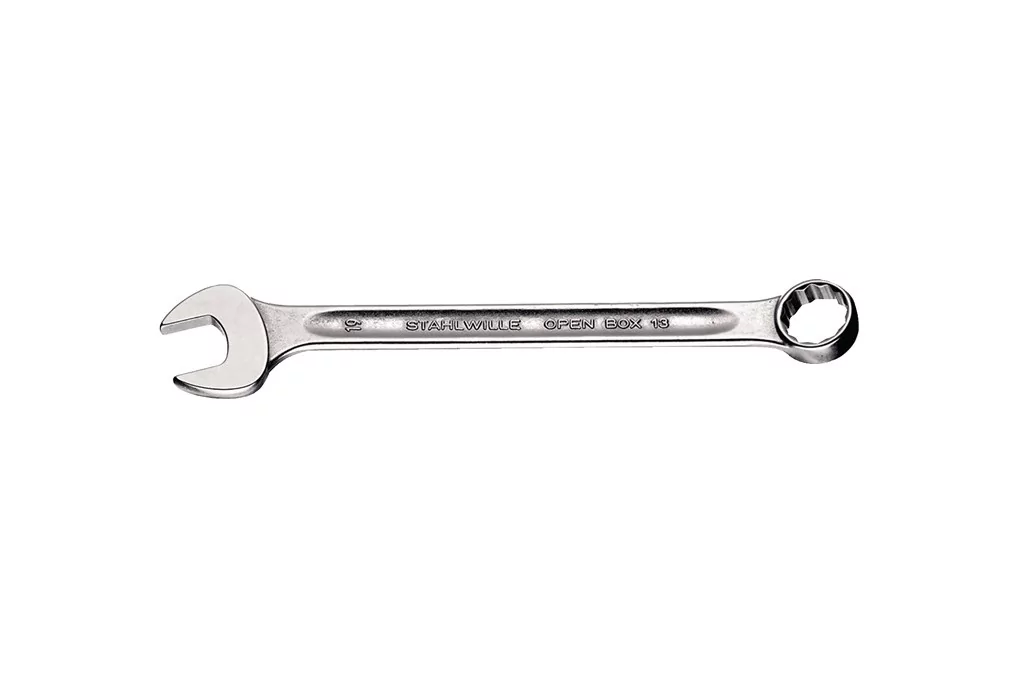 Ringmaulschlüssel OPEN BOX 13 SW 32mm L.360mm Form A CR-A-STA STAHLWILLEChrom-Alloy-Stahl · verchromt · mit gleichen Schlüsselweiten · Ringseite 15° abgewinkelt, Maulstellung 15° · dünnwandige Ringe - perfekt zum Schrauben an schwer zugängliche