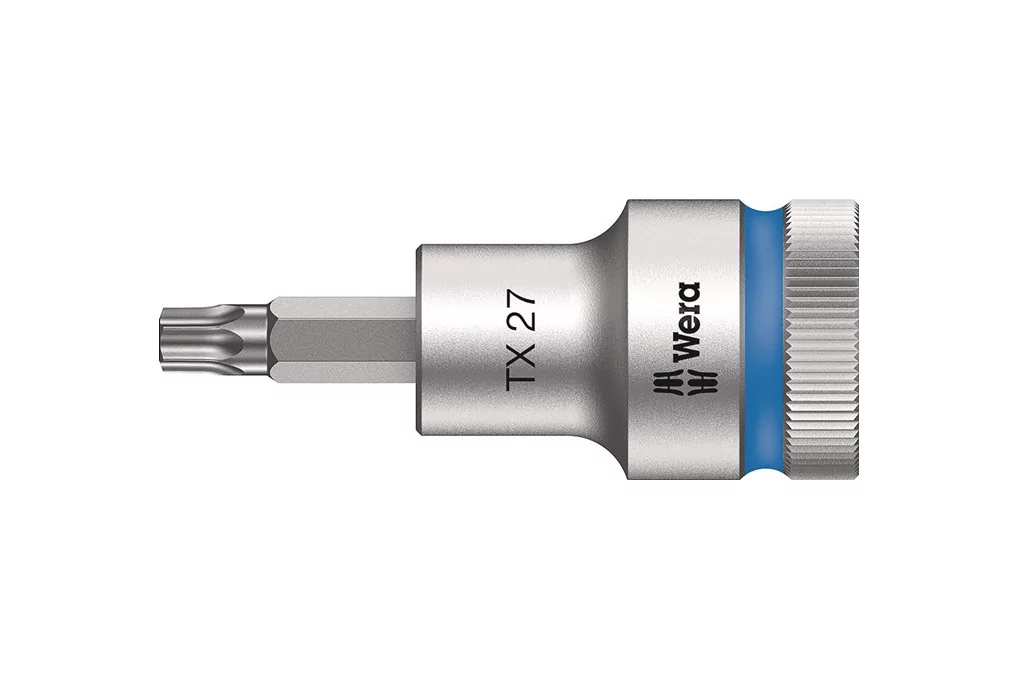 Steckschlüsseleinsatz 8767 C HF TORX® 1/2 Zoll T27 L.60mm WERA12,5 mm (1/2 ″)-Vierkantantrieb · mit Haltefunktion und Farbleitsystem · legierter Werkzeugstahl - matt verchromt · für Schrauben mit Innen-TORX®-Profil Weitere technische Eigenschaf