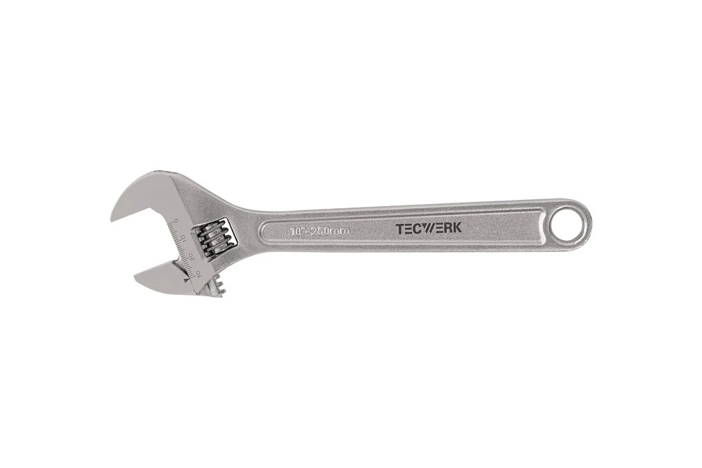 Rollgabelschlüssel max.19mm L.150mm m.Einstellskala TECWERKverstellbar · matt verchromt · Kopf poliert · mit Einstell-/Messskala auf dem Schlüsselkopf · Maulstellung 22,5° DIN 3117 A Weitere technische Eigenschaften: · Material: Hochleistungsstahl · Maulstellung: 22,5°