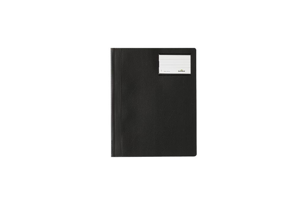 DURABLE Schnellhefter 250001 DIN A4 Polyethylen schwarzRückdeckel mit transparenter Innentasche. Kunststoffummantelte Heftzunge mit Endkappen. Auch passend für Prospekthüllen. Mit Einschubkanal für Hängeschienen.