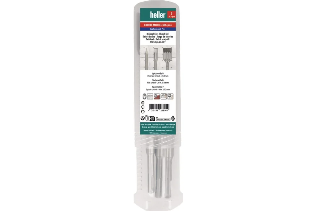 Bohrhammermeißelsatz 1218 Enduro SDS-plus 3 Spitz-,Flach-,Spatmeißellanglebig und kraftvoll · mit Selbstschärfungseffekt zeichnet sich insbesondere durch das innovative Meßelblattdesign mit erhöhter Blattlänge aus · das optimale Kopfdesign verleiht diesem Meißel seinen krafvollen Vortrieb und reduziert somit die Arbeitszeit · das ideale Werkzeug für Pofis mit sehr hohen Ansprüchen · Enduro SDS-plus als Spitz-, Flach- und Spatmeißel lieferbar Weitere technische Eigenschaften: · Länge: 250mm · Einsatzbereich: Beton, Kalksandstein, Mauerwerk · Schaftdurchmesser: 10mm