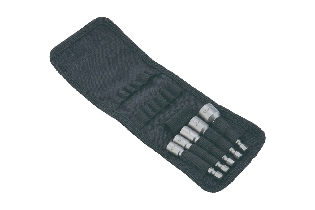 Steckschlüsselsortiment 5-tlg.SW 6/7/8/10/13mm Antr.1/4 Zoll 6KT E6,3 TECWERKfür Hand- und Maschinenbetrieb (konv. Akkuschrauber) · mit starkem Dauermagnet Antrieb: 6,3 mm (1/4″)-Sechskant DIN 3126 - E 6,3 · ISO 1173 Inhalt: je 1 Steckschlüssel-Einsatz mit 6,3 mm (1/4″)-6-kant-Antrieb 6 / 7 / 8 / 10 / 13 mm