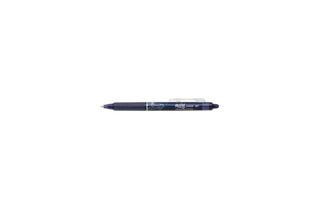 PILOT Tintenroller FriXion Clicker 2270026 0,4mm Druckmechanik sw.blInnovativer · radierbarer Tintenroller mit Druckmechanik über den Clip. Ausgestattet mit der patentierten · thermosensitiven FriXion-Tinte. Mittels der Kunststoffspitze am Gehäuseende und der erzeugten Reibungswärme (ab ca. 60° C) kann das Geschriebene weggerieben werden. Kälte bewirkt den Umkehreffekt. Eine kurze Zeit im Gefrierfach (ab ca. -10° C) lässt die Schrift wieder erscheinen. Edelstahlspitze mit Wolfram-Karbid-Kugel. Konische Edelstahlspitze für besonders hohe Druckresistenz und Langlebigkeit.