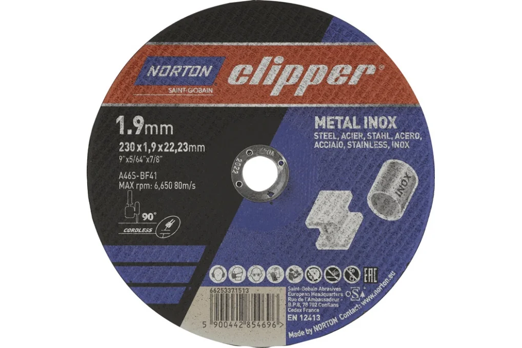 Trennscheibe D230x1,9mm Typ 41 Metall Inox Bohr.22,23mm NORTON CLIPPER