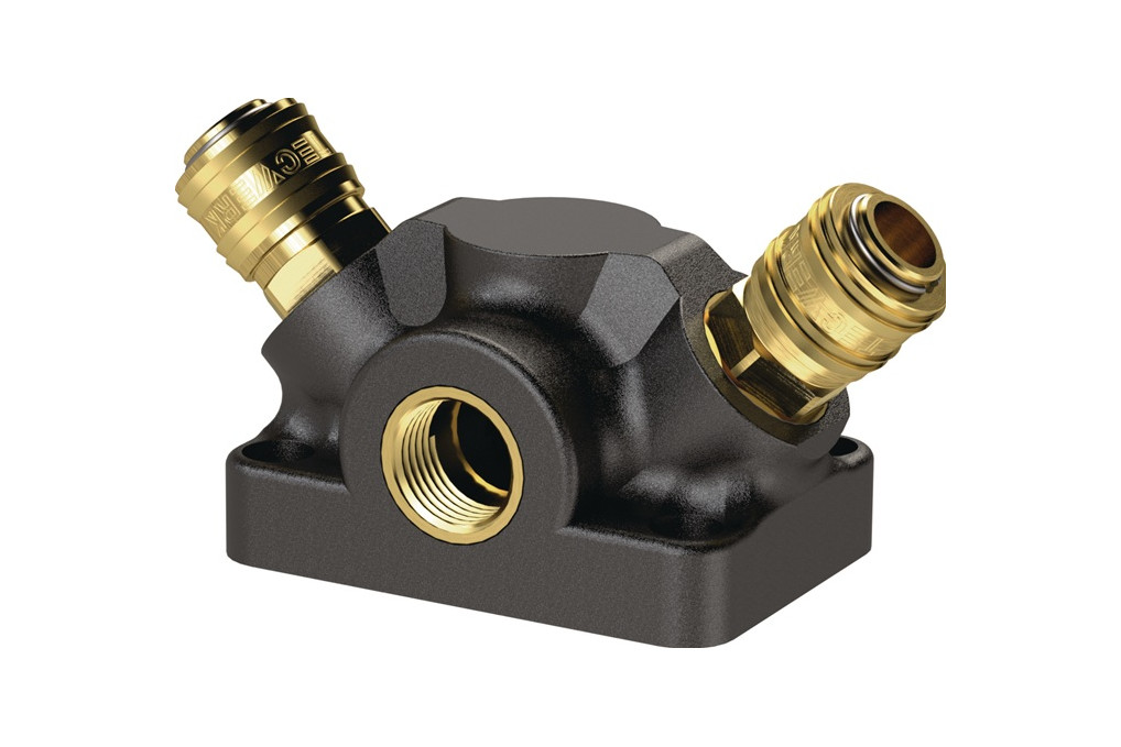 Endverteilerdose Gew.G 1/2 Zoll/19,17mm IG,2 Kupplungen DN 7,2 TECWERKmit fertig konfektionierten Messing-Schnellverschlusskupplungen · mit einem robusten Messing-Gewindeeinsatz für hohe Anzugsmomente